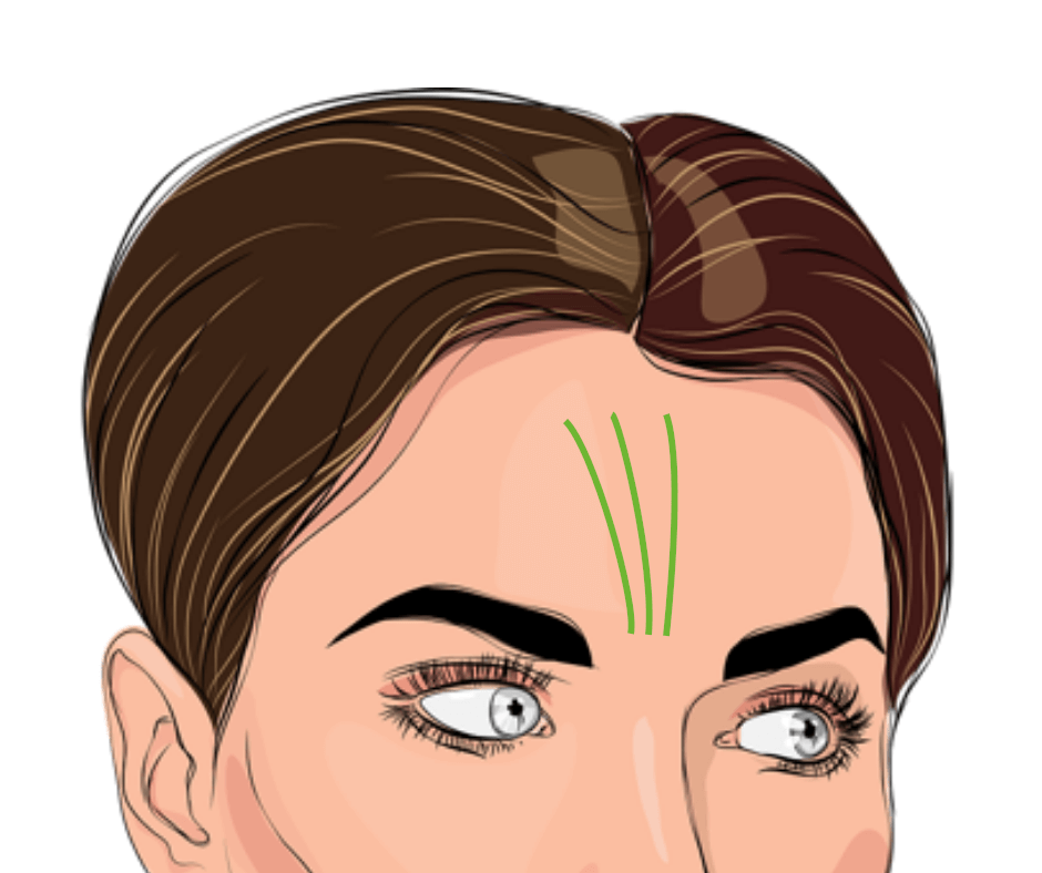 1. Con i pollici, traccia delle linee verticali dalla radice del naso verso il centro della fronte. Vai piano e premi con decisione. Fallo per almeno 30 secondi.