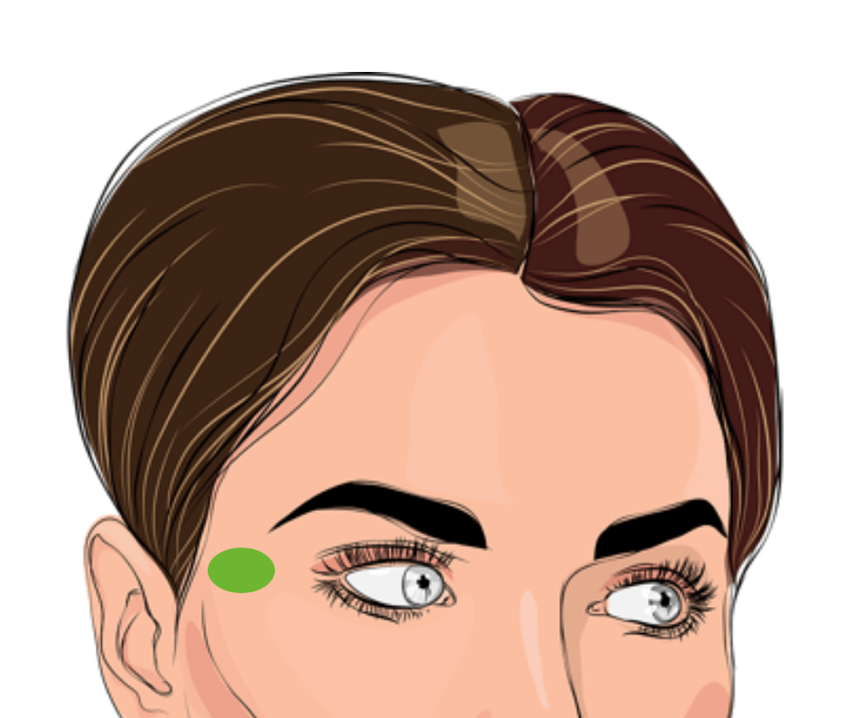 4. Fai dei cerchi con i pollici nella zona tra le tempie e le orecchie. Un trucco per trovare il punto giusto: apri e chiudi la bocca, sentirai i muscoli muoversi sotto le dita.